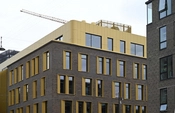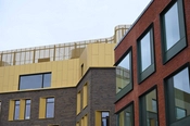 EC Hansen hus slutter med en penthouse-etage klædt i metal der skinner som let patineret messing. Metalfacaden er i familie med de mange kobberdetaljer på den historiske bryggerigrund.Fra tagetagen på EC Hansen Hus kan man nyde udsigten over byen, eller se ned gennem atriumgården som sørger for, at sollyset strømmer ned i bygningens store indre.