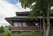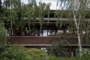 I 1976 ved 100 års jubilæet for forskningsinstitutionen, blev laboratoriet kraftigt udvidet og nyindviet som Carlsberg Forskningscenter. Arkitekt Jørgen Buschardt, stod for den knap 9000 m2 store tilbygning, der tilsammen med den oprindelige bygning danner en slags firelænget gård. I betragtning af at den oprindelige bygning bare rummer knap 3000 m2, fungerer sammenkoblingen mellem nyt og gammelt overraskende godt. Den nye tilbygning spiller i sit formsprog på japanske referencer, blandt andet i de valmede sadeltage. Materialiteten, med de røde tegl og betondragerne, samt den lavtliggende tyngde med vinduesbåndene i de to fulde etager, samt den tilbagetrukne tagetage spiller fint op til den gamle bygnings slanke højde. Beplantningen omkring komplekset skifter fra den formelle og symmetriske forplads til en frodig have på husenes bagside.