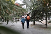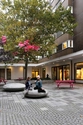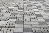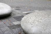 Gulvet i natursten er lagt både ude og inde, og danner grundlag for et samspil af pladser og opholdssteder. Gulvets skiftende gråtoner og felternes forskellige skala skaber sammenhæng og dynamik i den komplekse struktur.