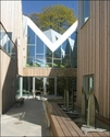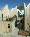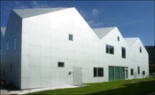 Centeret er opbygget som en række af små huse bundet sammen af et stort skulpturelt tag.