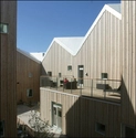 Det varme træbeklædte gårdrum virker som referencerum for hele bygningen.