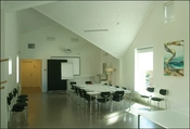 Ved et bevidst arbejde med skala, materialer og rumlige sammenhænge er der skabt en ganske særlig atmosfære i bygningen.