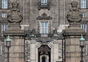 Christiansborg er et trefløjet slotsanlæg som gennemskæres af to porte: Kongeporten og Dronningeporten. De to porte forbinder den indre slotsgård med henholdsvis Slotspladsen og Prins Jørgens Gård. Dronningeporten fungerer som hovedindgang til de kongelige lokaler i nordfløjen. Tårnet er med sine 106 meter det højeste i København.