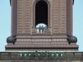 Facaderne er beklædt med granit men selve konstruktionen er af beton. Facadens ornamentering er udført af billedhugger Anders Bundgaard og indbefatter blandt andet granitmasker af fremtrædende mænd i den danske historie.