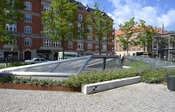 Byrummet ved Nuuks Plads station er placeret langs Jagtvej for på den måde at give maksimalt rum foran bygningerne der husede det tidligere landsarkiv. Ovenlyspyramiderne i det nye, lavtliggende design er omkranset af lave bede med skiftevis beton og blødt afrundet corten-kant.