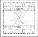 De enkelte etager i hver fløj er opbygget med en gennemgående gang i hele fløjens længde med mindre rum til den ene side beregnet til kontorer og større rum i den anden side til laboratorier.