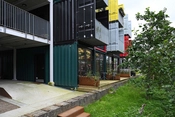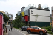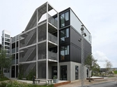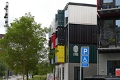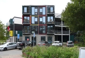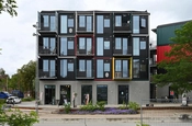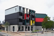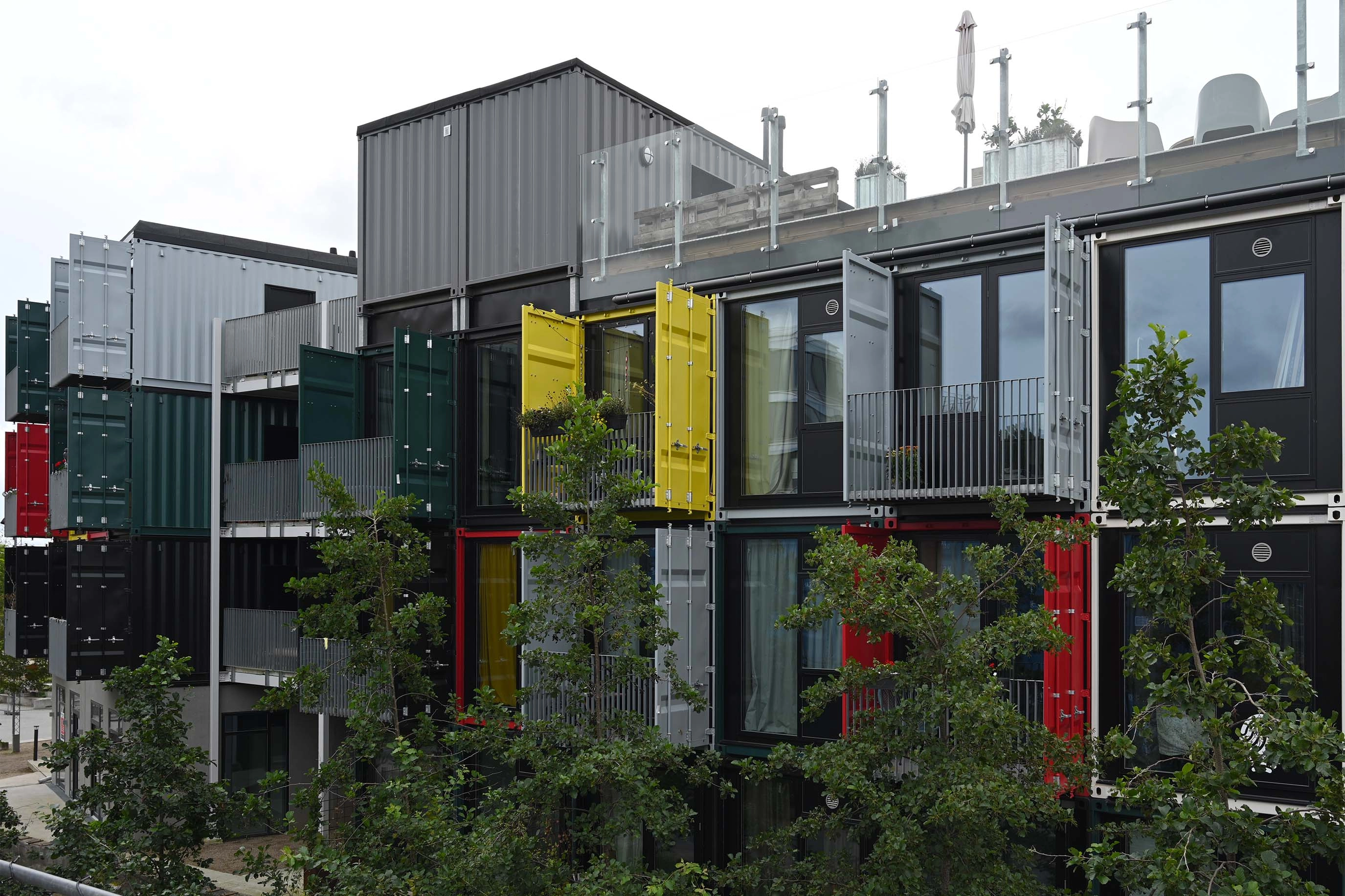 Bygningen er opbygget med en betonbase med tre punkthuse i en halvcirkel med facader ud mod de to centrale gader i Musicon, Rabalderstræde og Penselstrøget. To af punkthusene er opført i fire etager, bestående af en stueetage i betonbase med store glaspartier til erhverv og tre etager med boliger. Det tredje punkthus er opført i tre etager med boliger samt en stor fælles tagterrasse for bebyggelsens beboere. På bagsiden af husene er der etableret trappeopgange og en lille plads med grillområde, cykelparkering og udearealer. Alt sammen sikrer et levende miljø omkring de kommende containere.