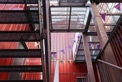 Studiebyen er opført i flytbare, genanvendelige træmoduler, med metalbeklædning. Hver unit rummer en fælles gang med fælles badeværelse til to værelser.