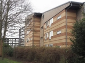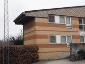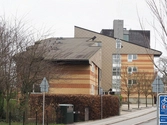 Bygningen er opført i 1991 af Tegnestuen Vandkunsten. Byggeriet er opført med bånd af røde og gule mursten op mod taget og i lange lodrette bånd beklædt med 60x60 cm plader af kunstskiffer. Taget er belagt med tagpap.