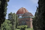 Den oprindelige del af kapellet omfattende kuppelbygningen og de to små to-etagers sidefløje er opført i 1908 med Holger Jacobsen som arkitekt.