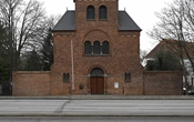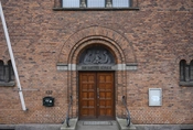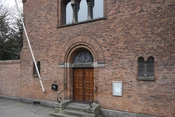 Over portalen er et relief, ‘Kristus og det døve barn’, af August Hassel.