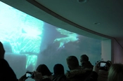 Langs ydervæggen kan man opleve isbjørnene i vandoverfladen.