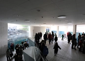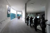 Ved udgangen er der lejlighed til at se isbjørnene i friluftsanlægget gennem store ruder.