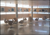 Hovedindgangen er beliggende mod syd og rummer det fælles ankomstareal møbeleret med Arne Jacobsens kendte Svanestol.