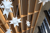 Foyeren er en stor klar og overskuelig rumlighed, hvor mange mennesker kan være samlet på samme tid under den store tagkonstruktion, der danner paraply over de besøgende, over foyerfunktionerne og markerer rummet som et særligt betydningsfuldt offentligt rum. Allerede i den lettilgængelige foyer introduceres gæsterne til Den Gamle Bys historiske håndværksmæssige kvalitet gennem en nøje bearbejdning af interiørets materialer og detaljer i den dragende hovedkonstruktion. Samtidig er hovedindgangen orienteret mod omverdenens kontekst, og spiller således sammen med den store diversitet i arkitektur og skala, der kendetegner Ceres-krydsets omgivelser.