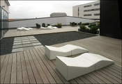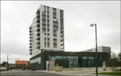 Højhuset indeholder lejlighederne og hotellet og den flade bygning vandlandet. Huset er 17.900 m2 stort og har kostet 178 mio. at opføre.