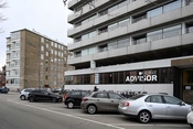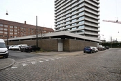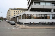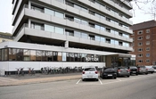 I stueetagen på højhuset er der en restaurant, da huset er tænkt som et kollektivhus for enlige, hvor der i de små lejligheder oprindeligt kun var små tekøkkener.