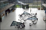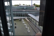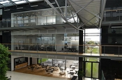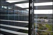 Den nuværende cirkelformede kantinebygning var tidligere en del af første fases hovedsæde.
