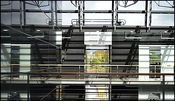 Møderum, video konferencerum og kontorer er opdelt i stablede sektioner.