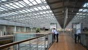 Ankomstudstillingen ligger i et af bygningens 2 hovedstrøg udlagt som et stort T.