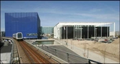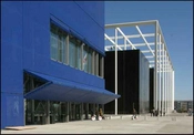 Segment 4 - koncertsalen og segment 1 - studiebygningen set den nærliggende metrostation: Universitetet.