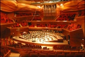 Koncertsalen er meget fragmentarisk opbygget med en masse niveauspring og skæve vinkler, der kræver mange interne trapper. På vægene er brugt birkefiner med akustiske og dekorative udfræsninger.