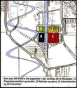 Midt ned gennem DR Byen løber Universitetskanalen. De to punkterede linier under og til venstre for bygningerne markerer metroens spor