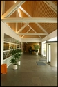 Tagets gitterkonstruktion og ovenlysbånd bidrager med en større spaciøsitet til den aflange forhal.