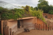 Norman Foster har sat sin tydelige signatur på elefanthuset, der består af to gigantiske glaskupler, som man ofte finder i hans byggerier. Glaskuplerne gør bygningen lys og venlig, og på glasset er trykt et bladmønster, så lyset inde i huset filtreres som gennem træer og buske. I det hele taget forsøger arkitekturen at skabe bedst mulige vilkår for elefanterne, dette også ved at gøre de indre rum store nok til, at flokken kan blive sammen døgnet rundt.