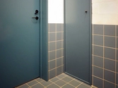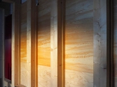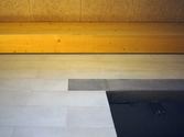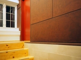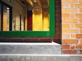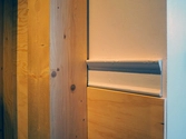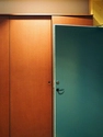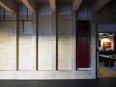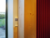 Tillæggene består af konstruktioner i træ, terrazzogulve og kalkblok-vægge, faste indbyggede skabs- og reolvægge i rød indfarvet MDF, rødlakerede radiatorer, blå døre og sokkelfliser.