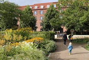 Parken er opdateret med nye funktioner i respekt for den oprindelige udførsel. De nye vandbassiner og skybrudsselementer i beton giver parken et robust udtryk, men har sanselige kvaliteter i betonens detaljering. Som pusterum på Vesterbro, blev den neoklassiske park etableret i 1929. Før Arne Jacobsen blev en verdenskendt arkitekt, tegnede han som nyuddannet arkitekt scenebygningen to pavilloner/læskure to boder og indgangspartierne til parken.
