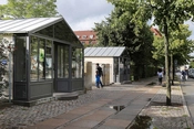 De oprindelige boder opførtes 1928-29 efter tegninger af Arne Jacobsen og blev revet ned i 1970. Pavillonerne er udført i glas i konstruktioner af jernprofiler.