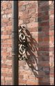 Tagets udhæng understøttes af stenknægte, hvis mellemrum er dekoreret. Over hver knægt sidder en stenugle.