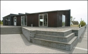 Rækkehusene ligger langs promenaden, hvor bygningerne ligger som små fritliggende klynger langs med det åbne havnemiljø.
