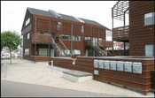 Den ene af de to lange erhversbygninger er i stueetagen indrettes med bankfilial, butikker samt en cafe. De øvrige etager optages af boliger.