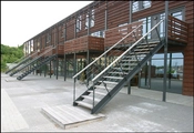 Adgangen til boligerne sker fra åbne altangange på første sal. Boligerne er indrettet i to etager med dobbelthøje opholdsrum.