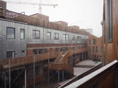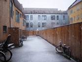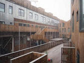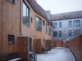 Bebyggelsen er tænkt som en landsby i byen, med et intimt indre gårdrum, som rækkehusene samler sig omkring. Udadtil fremstår bebyggelsen som et varieret og komplekst samlet volumen, med fokus på områdets industrielle karakteristika, og materialerne galvaniseret stål, glas og rødt tegl i den eksisterende bygning, som er inkorporeret i det nye volumen. Mod gården og de individuelle gårdhaver er materialet træ.
