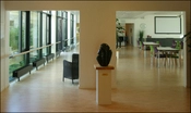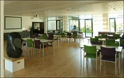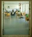 Den et-tages kantine og dagligstue forbinder bygningens to fløje og er samtidigt også åben for daggæster.