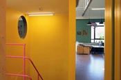 Foruden den markante brug af farver bærer renoveringen præg af et stærkt fokus på taktilitet og materialitet. Bygningernes indre overflader er skiftevis rå, ubehandlede og finere bearbejdede flader med farver. Bygningens oprindelige industrielle arv understøttes af nye ubehandlede materialer såsom stål og krydsfiner i sammenspil med synlig rørføring og ventilationssystem.
