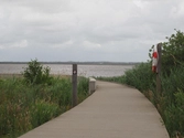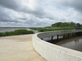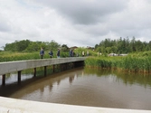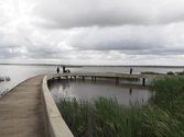 Besøgsstedet består af en adgangsvej, en formidlingsbygning, en landskabsbro og en parkeringsplads til de besøgende. Den store ellipse, der i en enkelt form både griber formidlingsbygningen landskabsbroen, udfolder den store horisont som vandspejlet skaber. Ellipsen er udstyret med en massiv siddekant der giver mulighed for at sidde og opleve naturen.