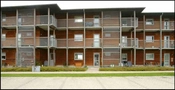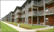 Det almene afsnit er placeret i den nordligste vinkel med fælleshuset i toppunktet og er differentieret på to, tre og firerums lejligheder.