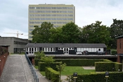 Det 12-etagers højhus og den lave tilstødende kantine er begge tegnet af FL Smidths eget arkitektkontor ved arkitekt S. Langkjær.