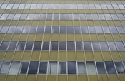 Højhusets arkitektoniske udtryk er domineret af de vandrette vinduesbånd.