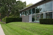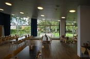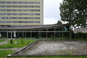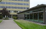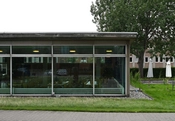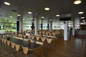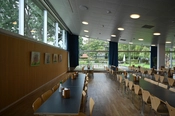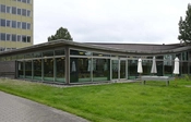 Kantinen ligger i forbindelse med højhuset ud til Ramsingsvej. Bygningen er domineret af det store buede tag og glasfacaderne.