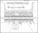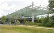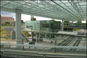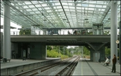Et meget stort glastag dækker alle tre stationer og fungerer som image- og pejlemærke for stationen. Under glastaget er de forskellige faciliteter placeret afhængig af systemet. Stationen ligger i en park og de eksisterende broer i området er blevet renoveret for at sikre et ensartet udtryk.