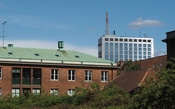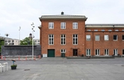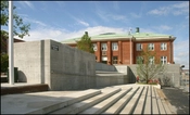 Tilbygningen, som er delvist forsænket, er placeret mellem det gamle bibliotek lige overfor Frederiksberg Gynmasium på den nye Falkoner Plads.