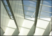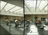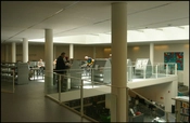Overgangen fra det gamle bibliotek til det nye, oplyst naturligt af store ovenlys.