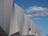 Parkeringsanlæggets tag udgøres af profilerede, buede aluminiumsplader.