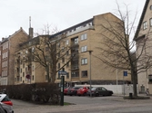 Bygningen består af 5 etager hvor den øverste etage er tilbagetrukket med altan mod Storm Petersens Vej. Ydervæggene er mursten af tegl, kalksten og cementsten og taget af fibercement, herunder asbest (bølge- eller skifer-eternit)