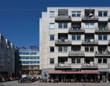 Frederiksberggården er opført i 1939 af Frits Schlegel og Magnus Stephensen for A/S Frederiksberggården. Den seksetagers randbebyggelse mod Gammel Kongevej indeholder butikker i stueetagen og 55 lejligheder i de øvrige etager. Huset er en jernbetonkonstruktion, båret på søjler i de to nederste etager